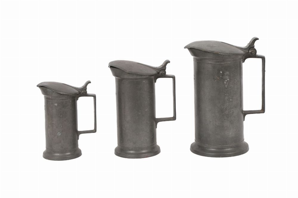Lot 1289 SET OF THREE PEWTER JUGS