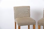 A set of three dining chairs with padded backs and seats, upholstered in a neutral woven fabric. Clean contemporary styling with curved top rails and piped seams.