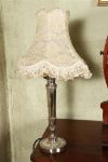 Lot 509 SHEFFIELD-PLATED TURNED STEMMED TABLE LAMP AND SHADE