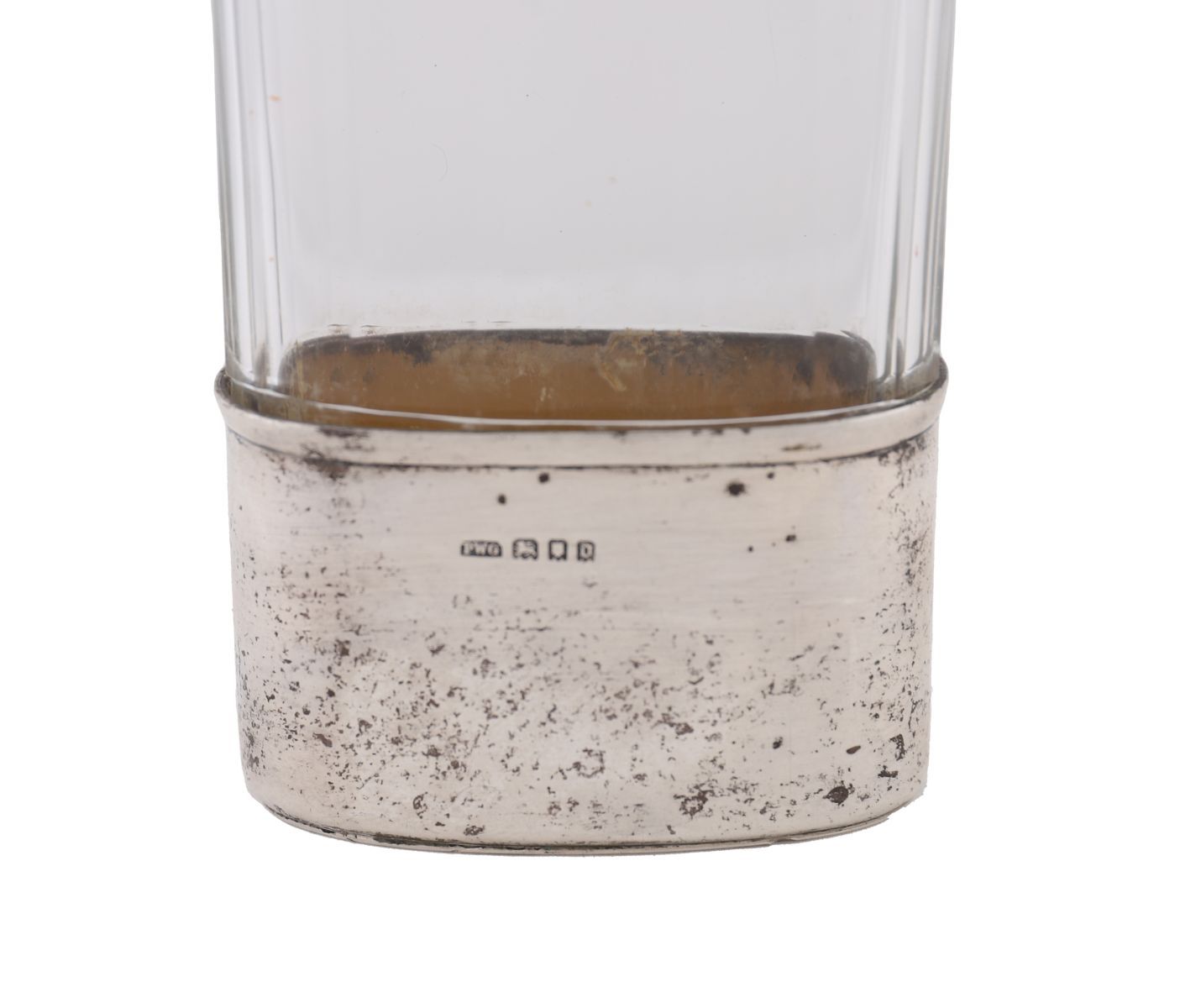 Lot 553 SILVER AND GLASS HIP FLASK, LONDON 1919