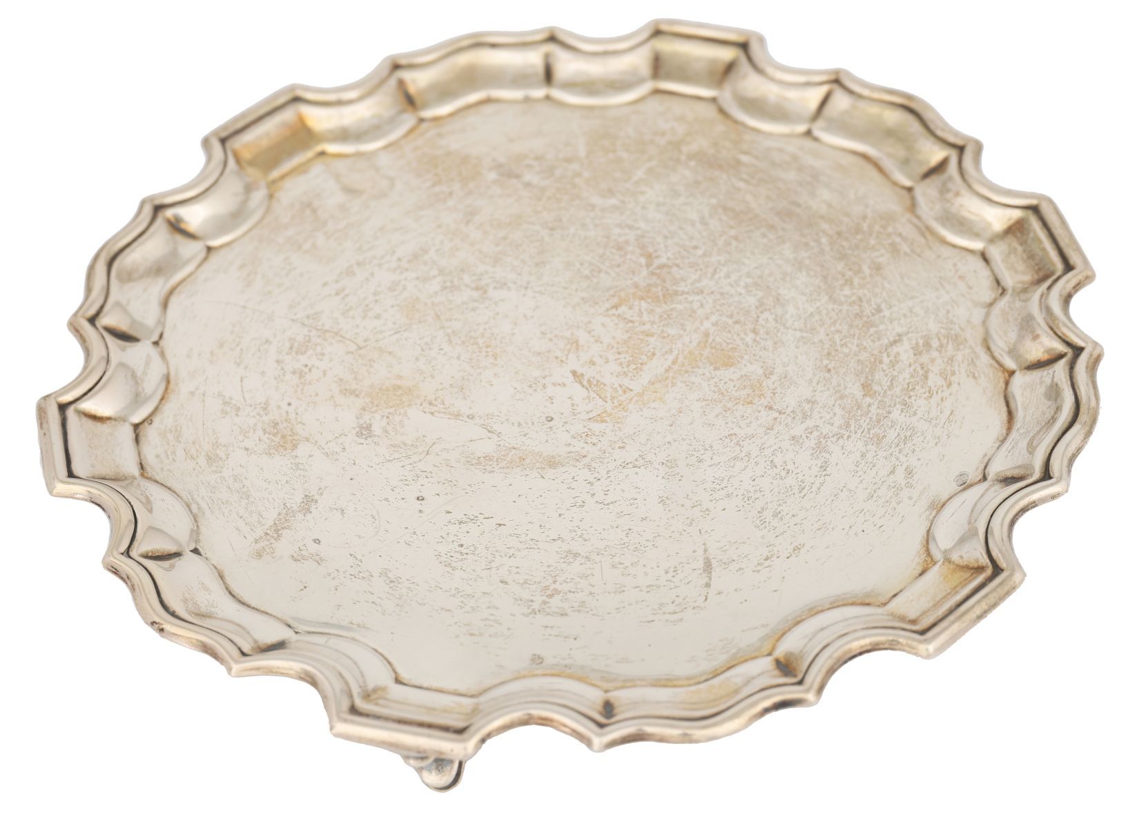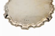of circular serpentine shape with a pie crust border, raised on double scroll legs and stepped feet. London 1925. Makers: Josiah Williams & Co. 373 grams.