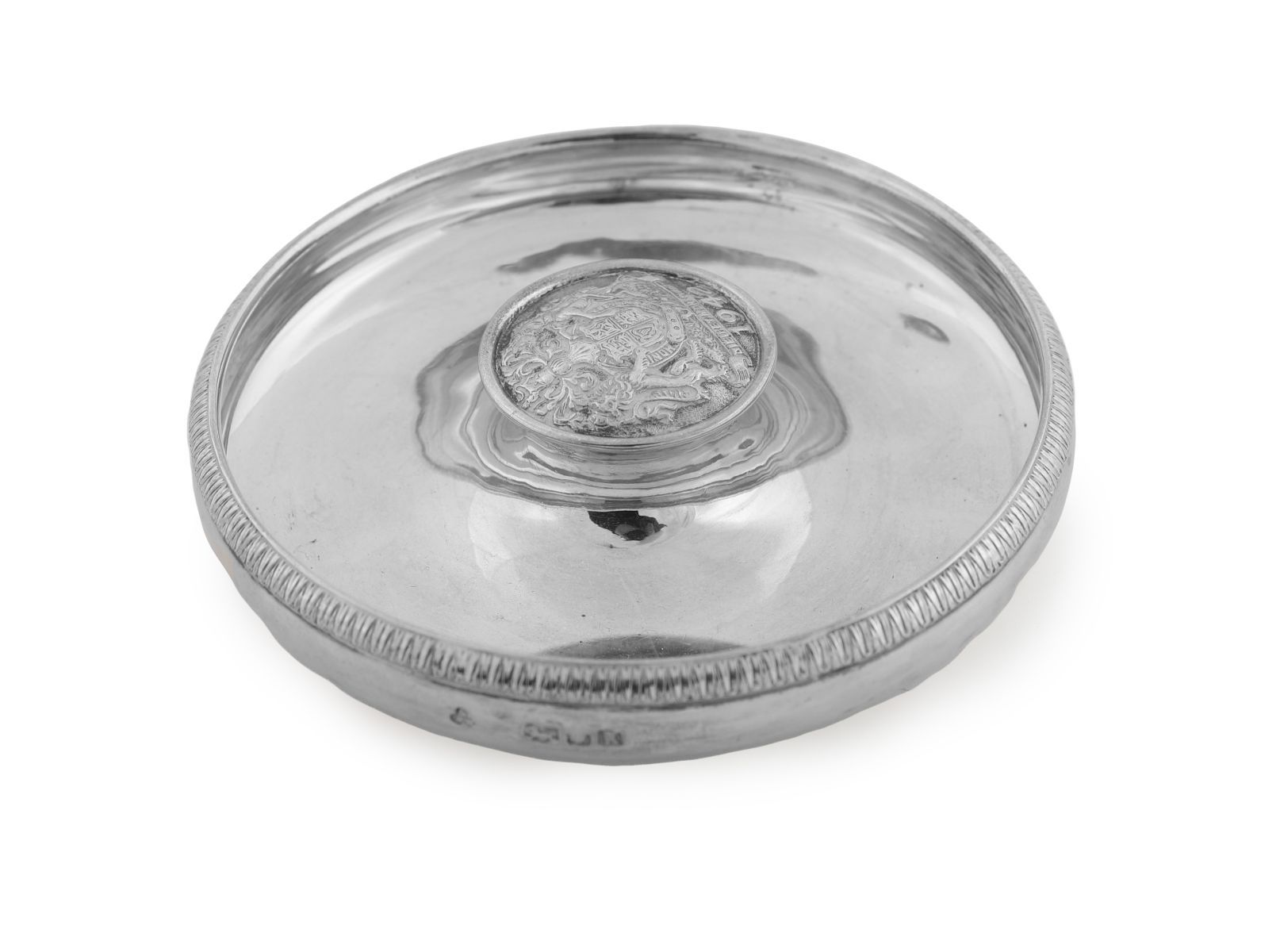 London, 1945, circular with beaded rim and raised central boss.