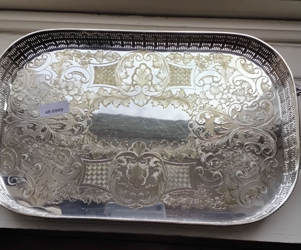 Lot 1675 SILVER-PLATED RECTANGULAR GALLERY TRAY