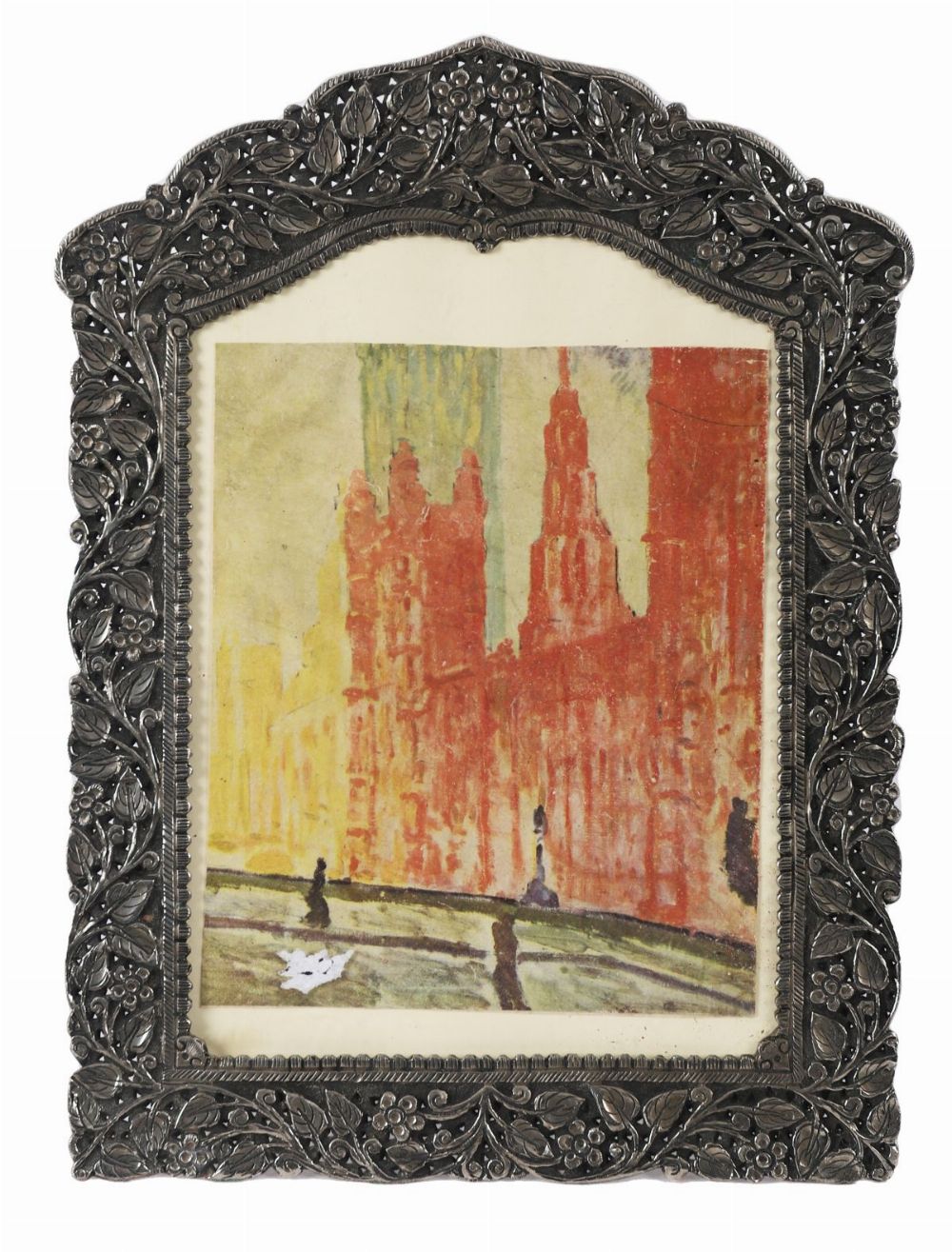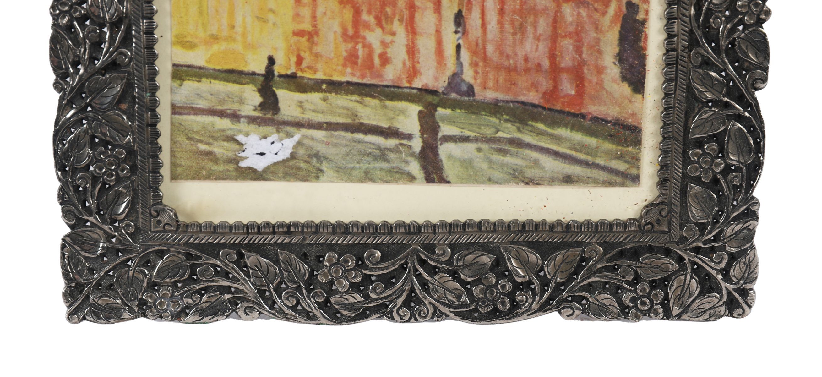Lot 561 SILVER-PLATED REPOUSSÉ PICTURE FRAME WITH OFFSET LITHOGRAPH OF NOTRE-DAME