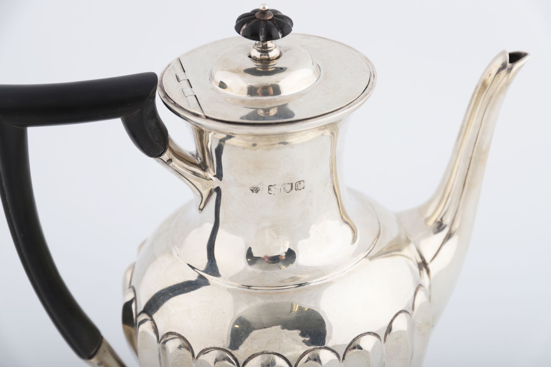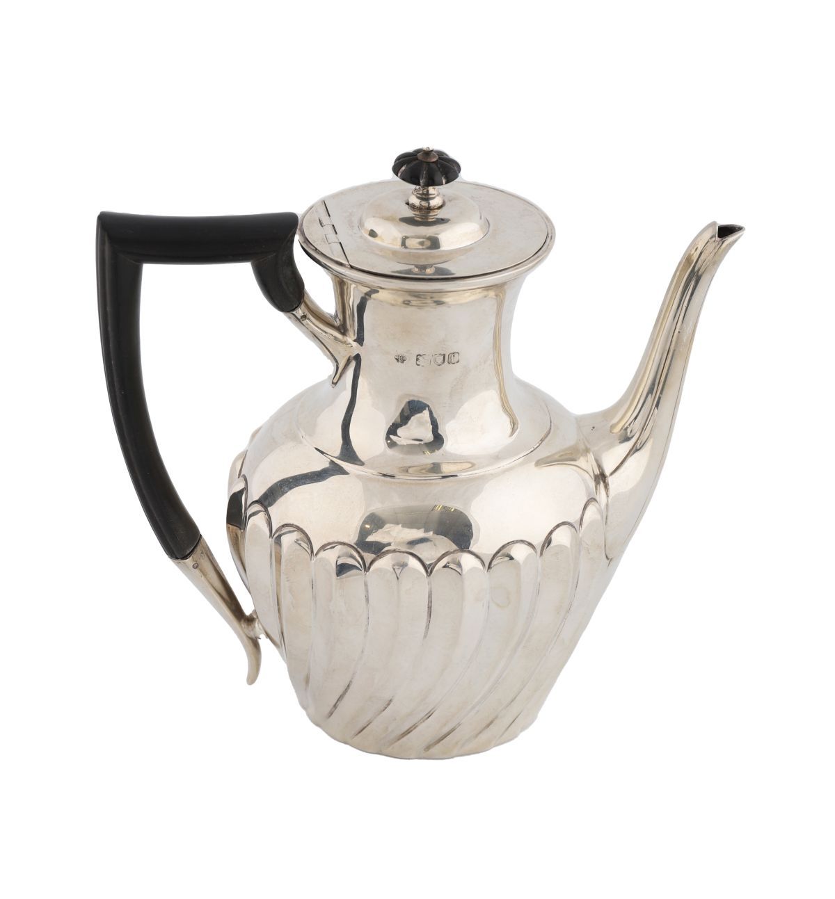 London, 1901. Fluted baluster form with ebonised handle, bright polished finish.