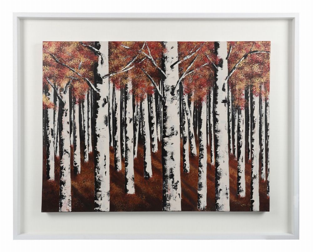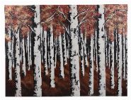 A richly textured depiction of birch trees in warm autumn hues, rendered with vertical rhythm and a luminous palette. Pourger’s brushwork evokes the movement and atmosphere of West Cork’s wooded landscapes.