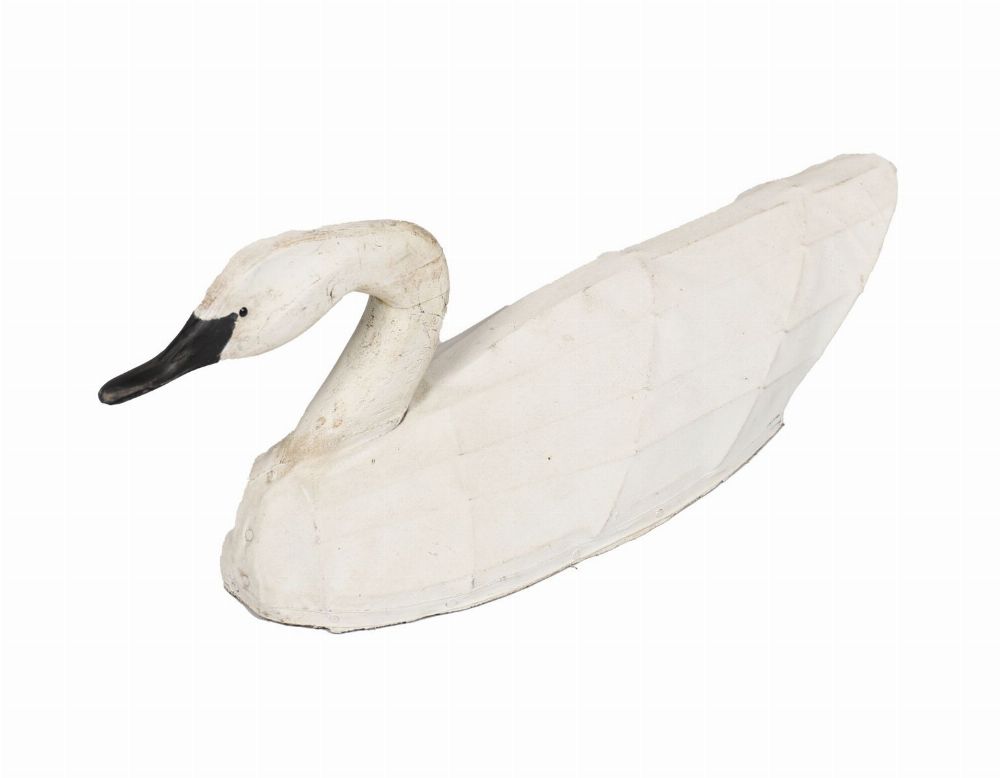 Constructed from wire frame and canvas body with painted finish, depicting a snow goose in alert pose.