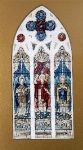 Framed late 19th-century stained-glass watercolour presentation design, attributable to Arthur Louis Moore & Co., London, prepared for Church of Ireland parish commissions. The studies reflect Moore’s practice of producing bespoke designs for individual churches rather than standardised cartoons.