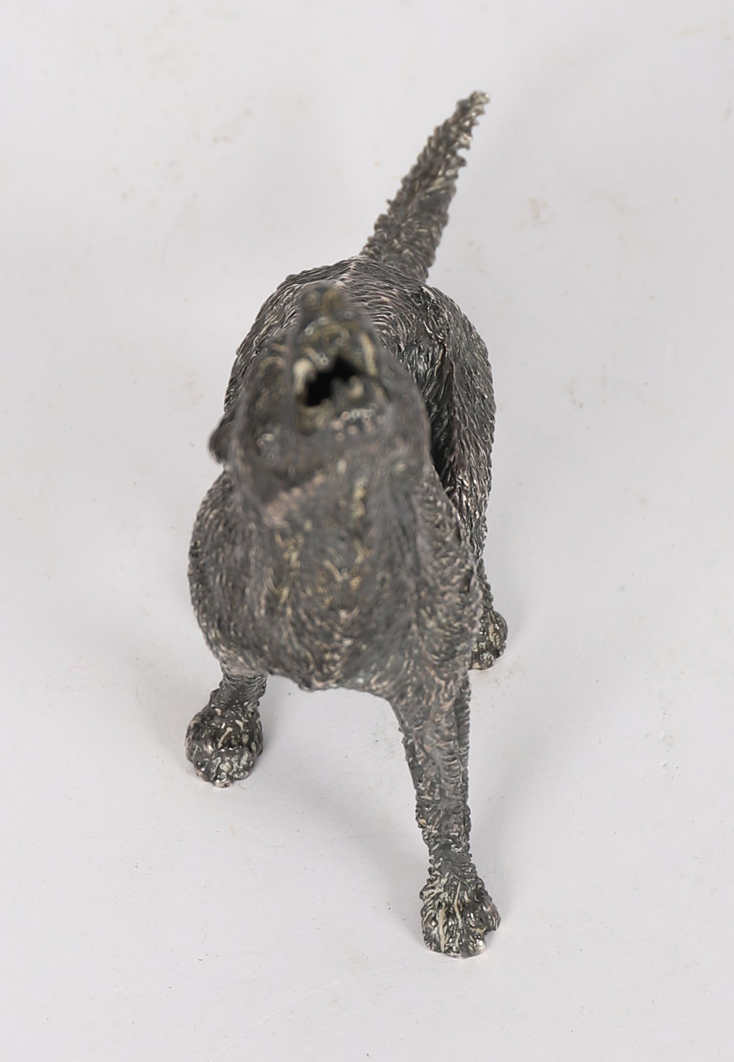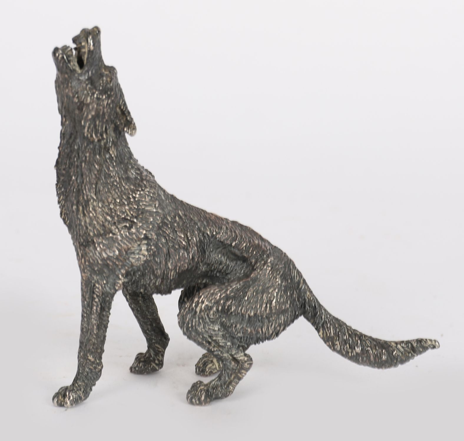 A sterling silver cast model of a leaping hound, finely detailed, approx. 240 grams, stamped with sterling marks.