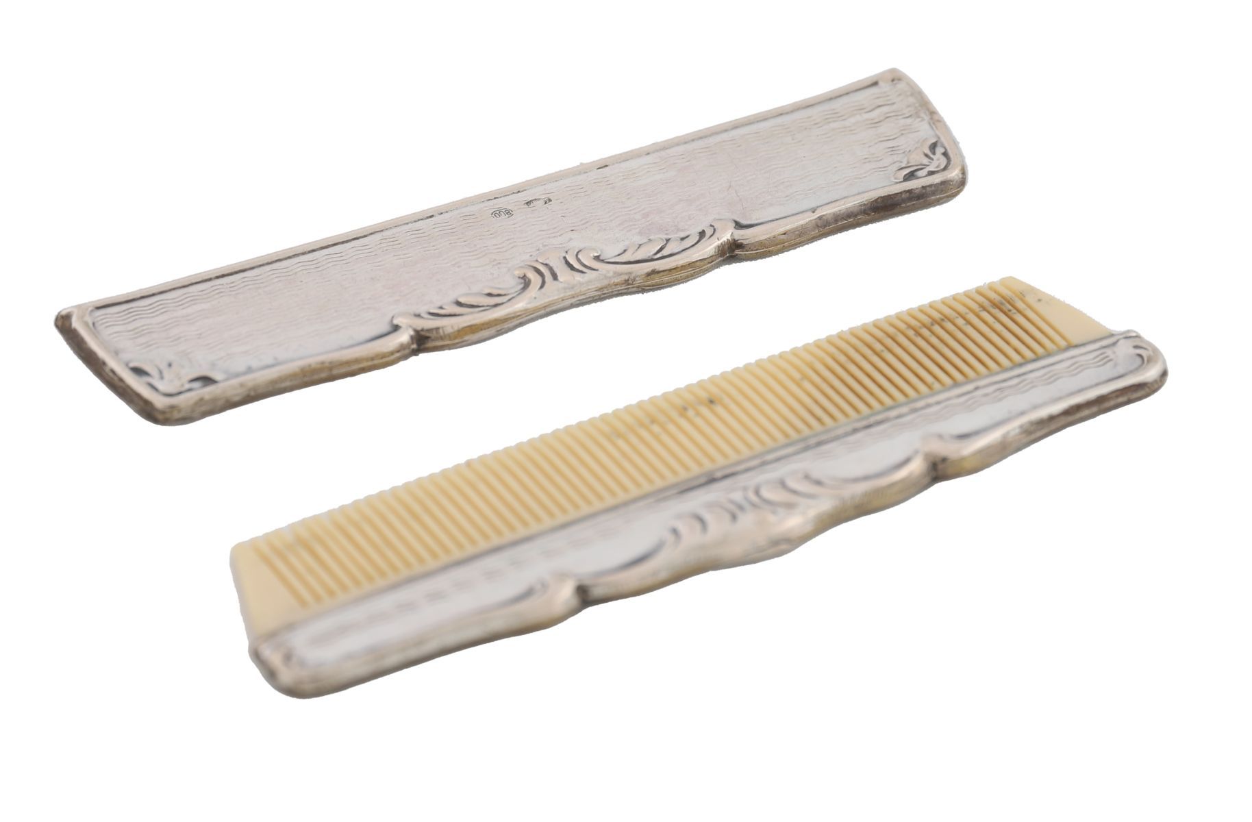 The silver mount engraved with foliate decoration, fitted with a fine-toothed comb.