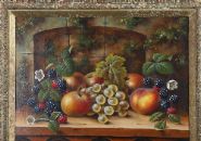 J.F. Smith (20th century), Still Life with Grapes, Apples and Blackberries, oil on panel, signed lower right, in gilt moulded frame.