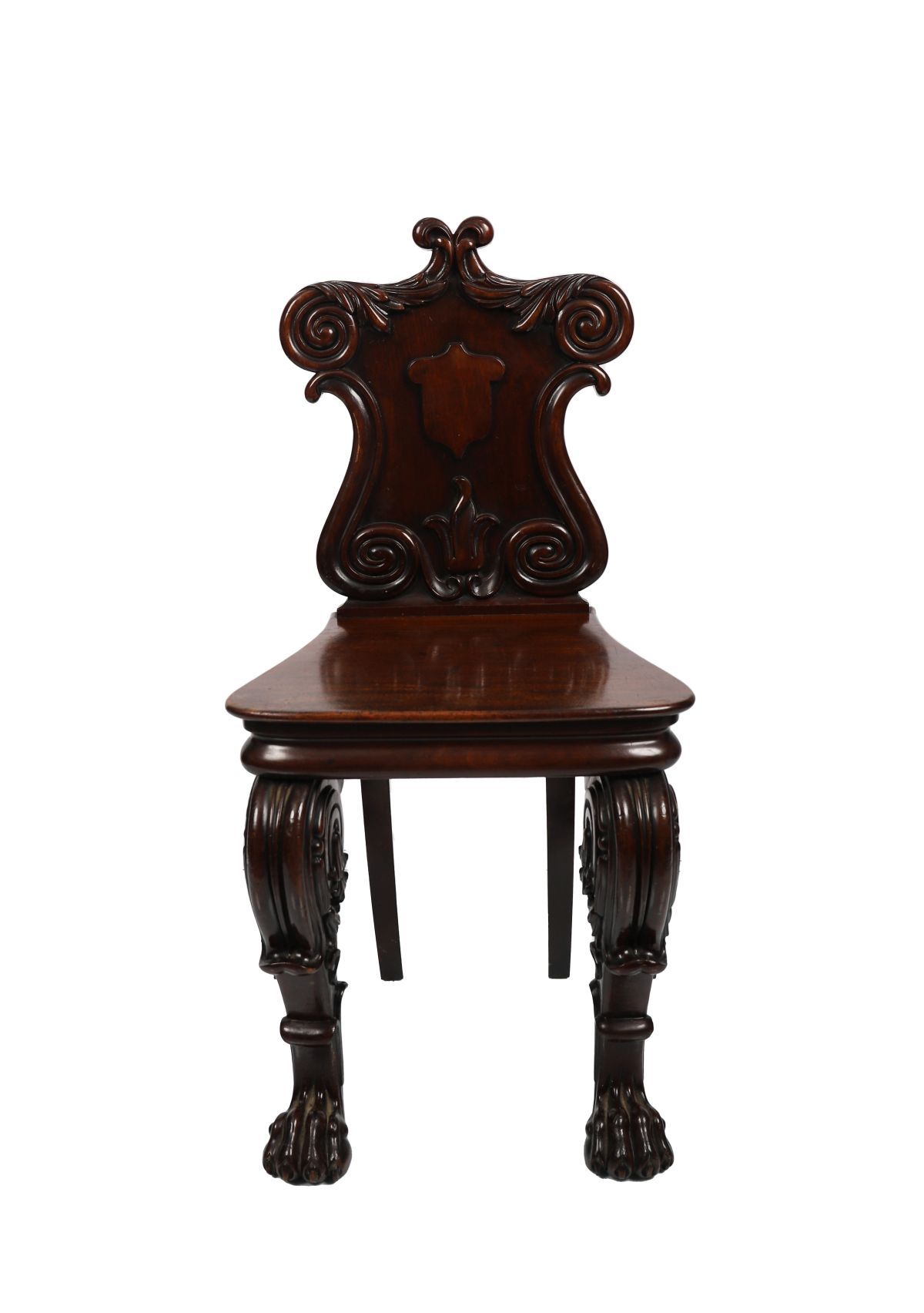 Lot 236 STRIKING REGENCY MAHOGANY HALL CHAIR