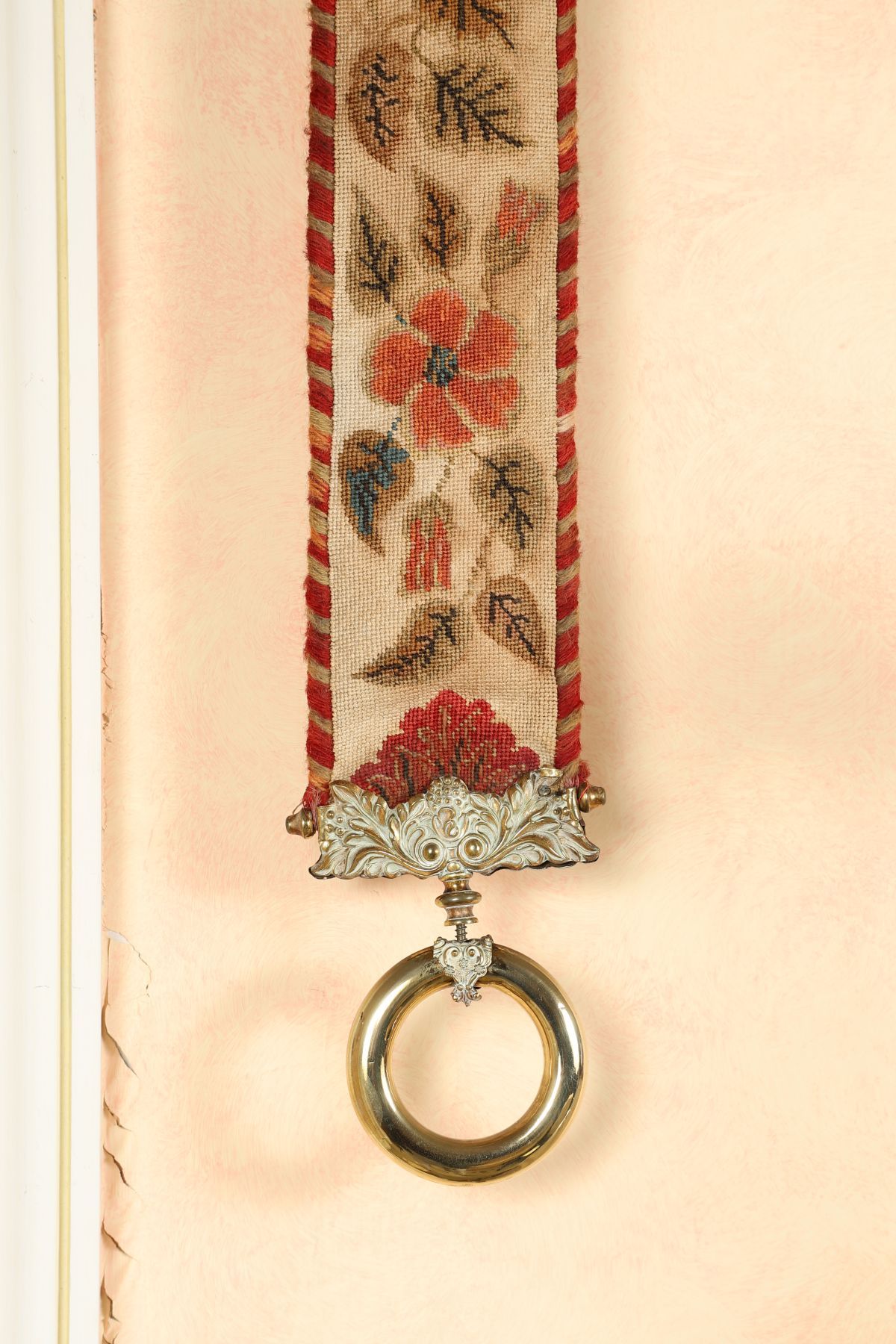 Lot 196 TAPESTRY AND BRASS-MOUNTED BELL PULL