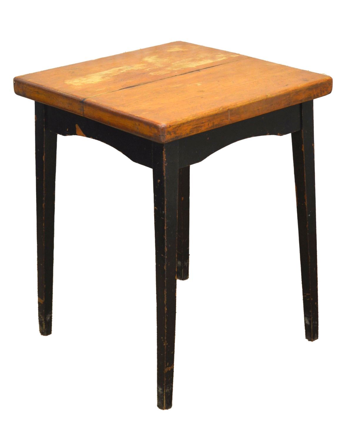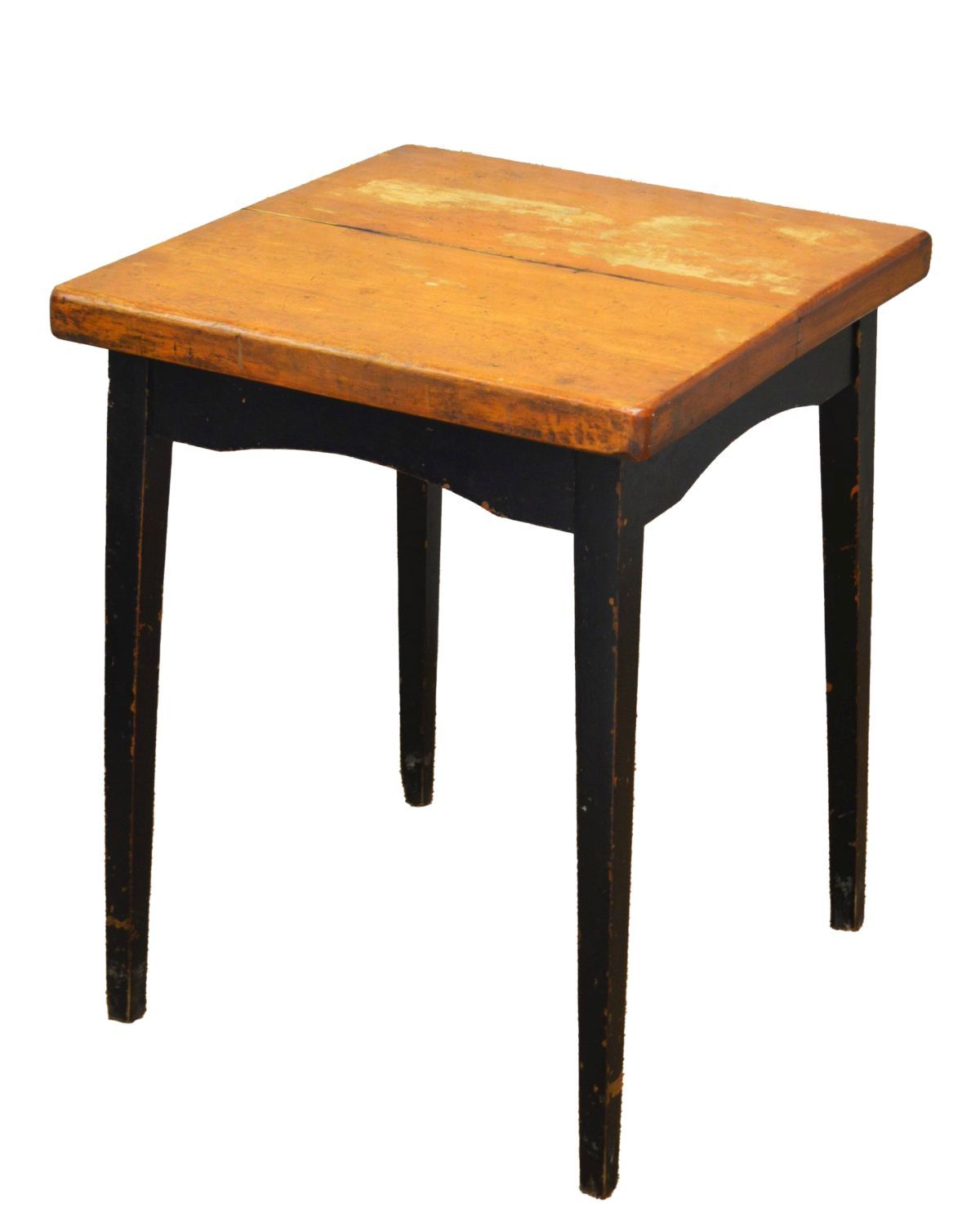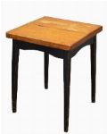 a modernist-style square top table raised on four square ebony-stained legs; likely used in a bar or tavern setting.
