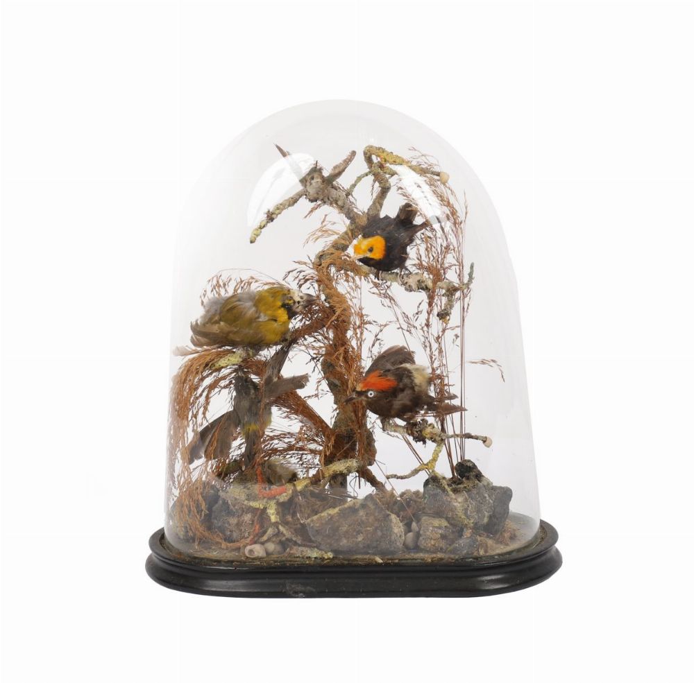 Lot 316 TAXIDERMY: DOME OF EXOTIC BIRDS