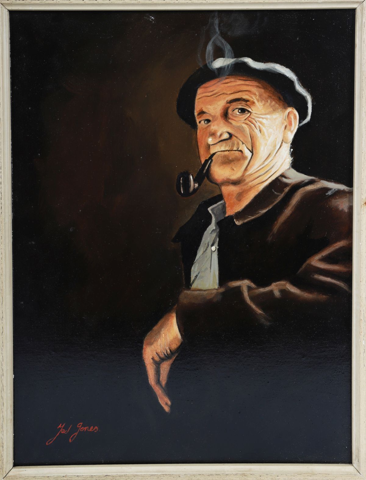 A characterful portrait of a Connemara man smoking a pipe, his expression rendered with warmth and realism. Jones combines precise draftsmanship with strong chiaroscuro to create a striking and memorable likeness.