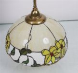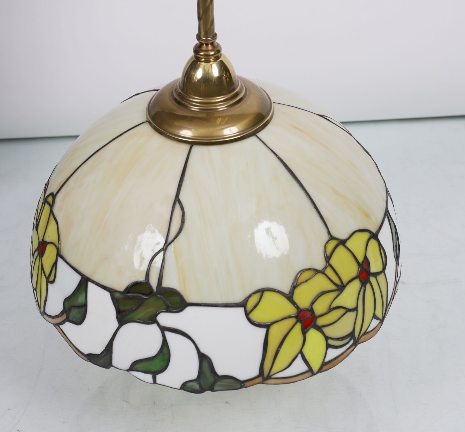 Lot 946 TIFFANY-STYLE HANGING LAMP WITH BRASS STEM