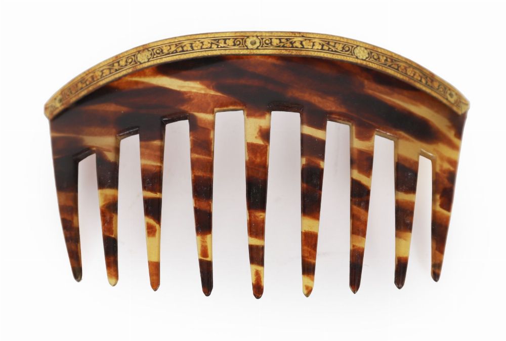 Lot 151 TORTOISESHELL HAIR COMB WITH GILT METAL DECORATION, 19TH CENTURY