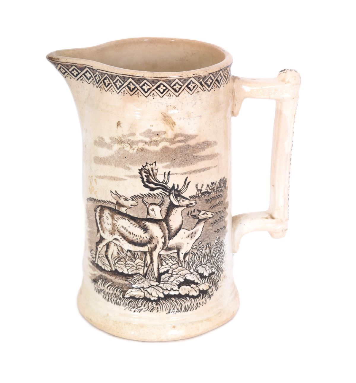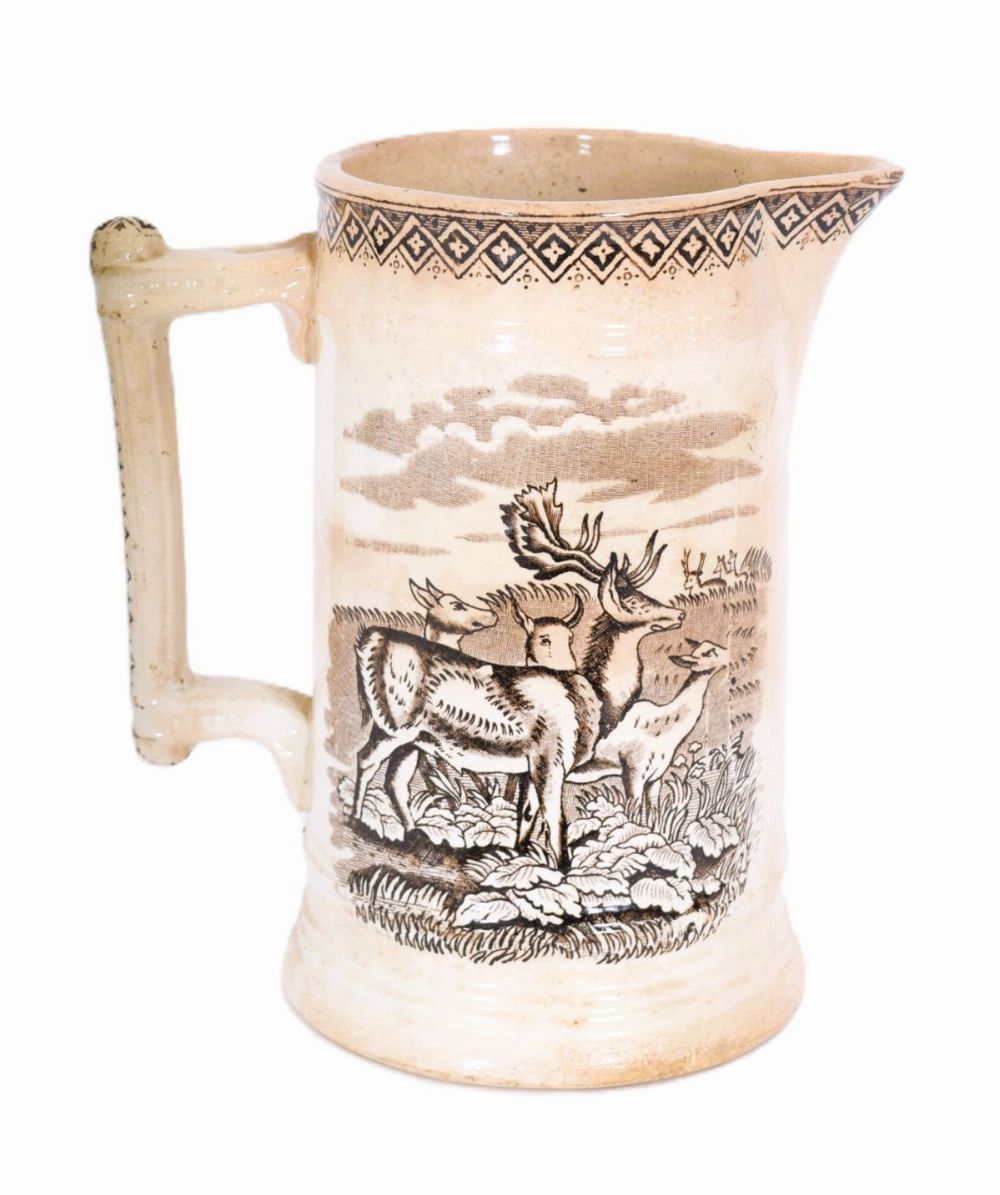 Lot 1563 TRANSFER-PRINTED MILK JUG WITH “DEERIN†LANDSCAPE PATTERN