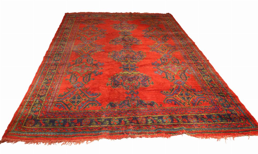 Lot 763 TURKISH HAND-KNOTTED WOOL CARPET WITH RED GROUND