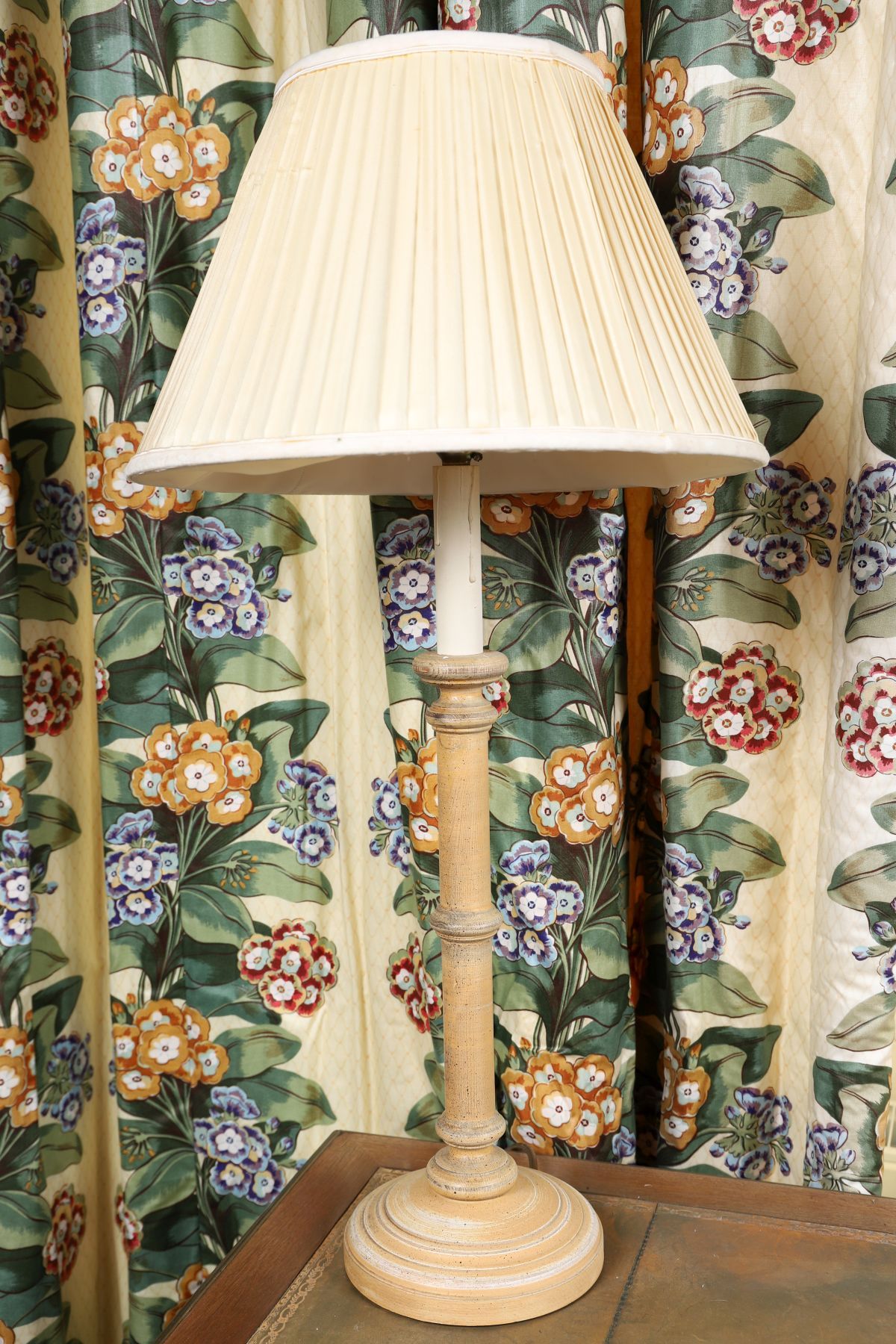 Lot 152 TURNED WOOD AND PAINTED TABLE LAMP AND SHADE