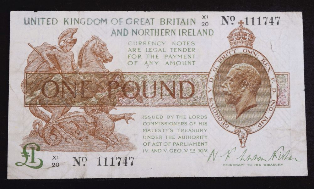Serial no. 111747. Typical green issue, this series was the last widespread sterling £1 note before decimalisation.