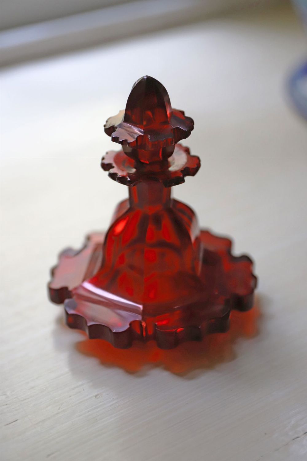 Lot 521 UNUSUAL 19TH-CENTURY BOHEMIAN RED GLASS PERFUME DECANTER