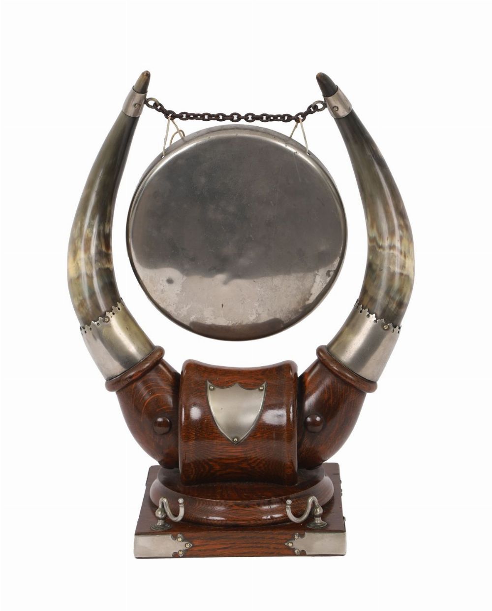 Lot 455 VICTORIAN OAK, SILVER-MOUNTED AND HORN DINNER GONG