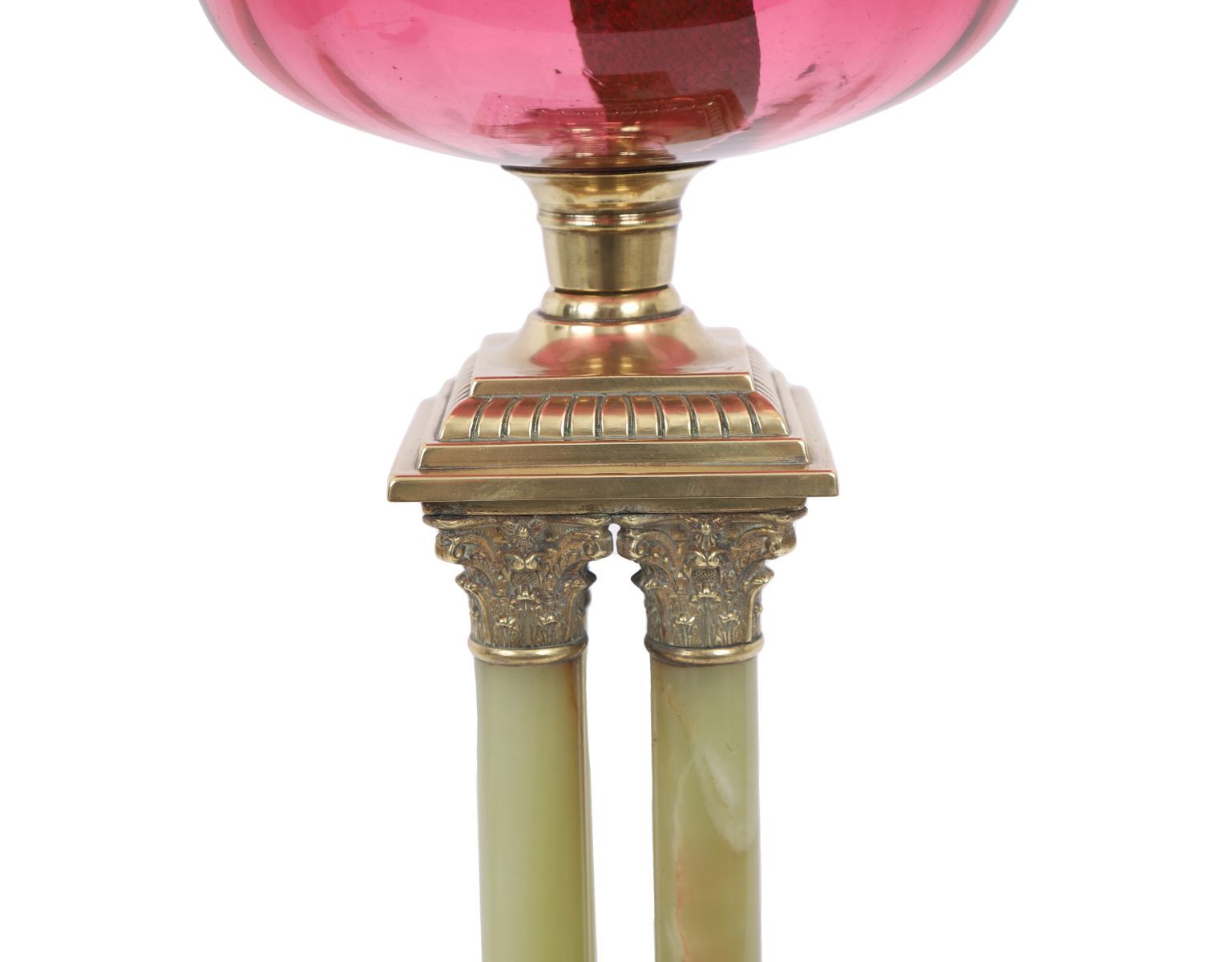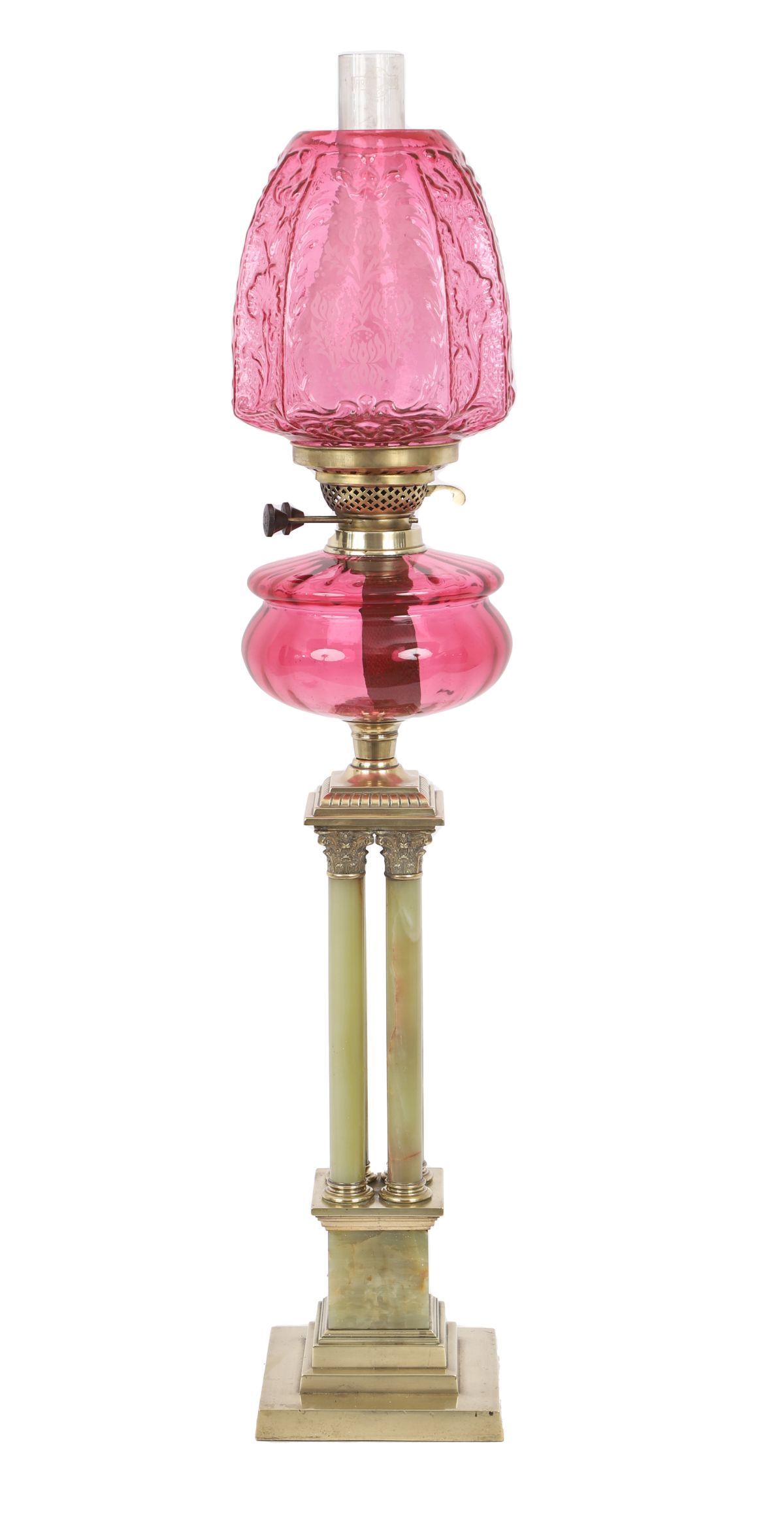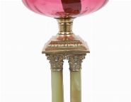 Lot 198 VICTORIAN OIL LAMP ON ONYX MARBLE AND BRASS COLUMN BASE