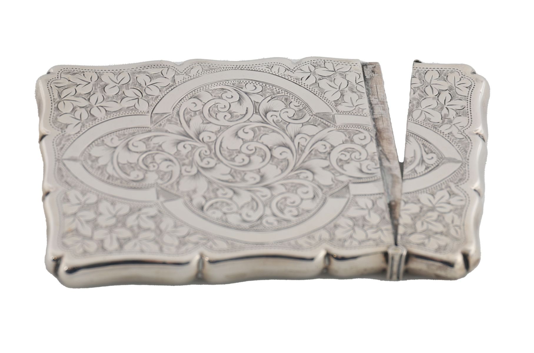 Birmingham, 1905, of rectangular form with engraved foliate decoration.