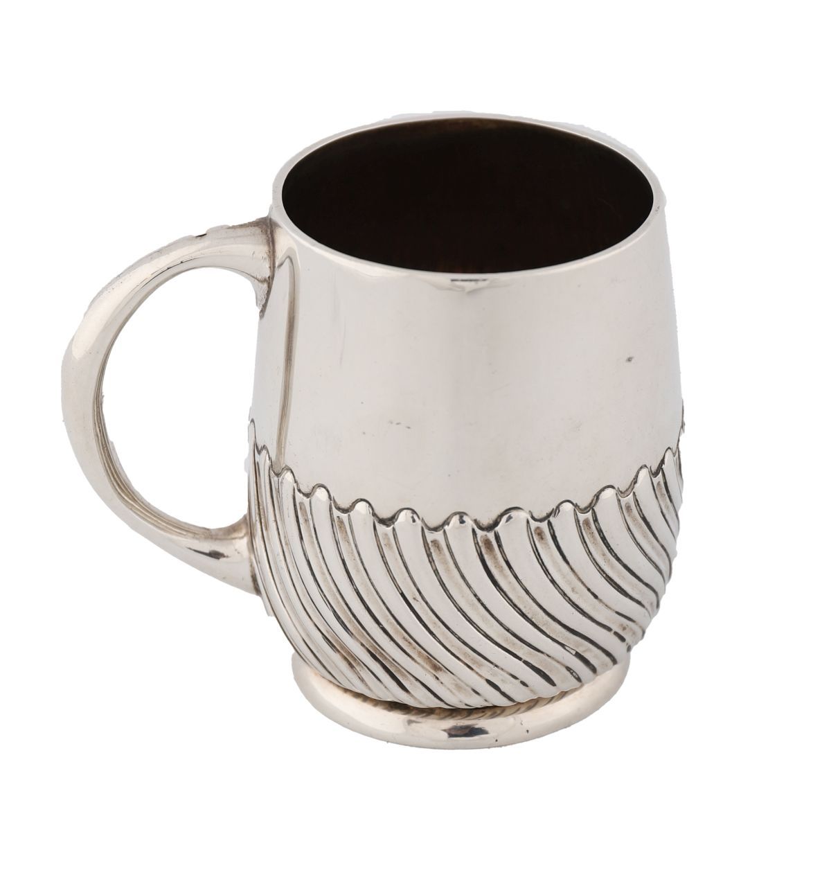 A Victorian silver christening mug by Charles Edwards, of plain polished form with applied swirl fluting to the lower body and gilt interior. Weight 129 g