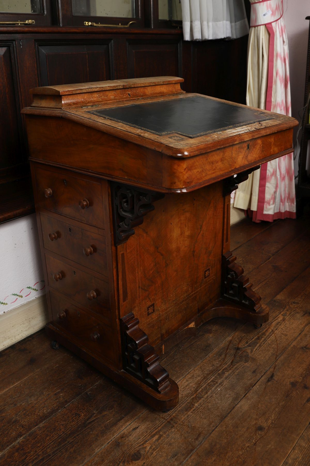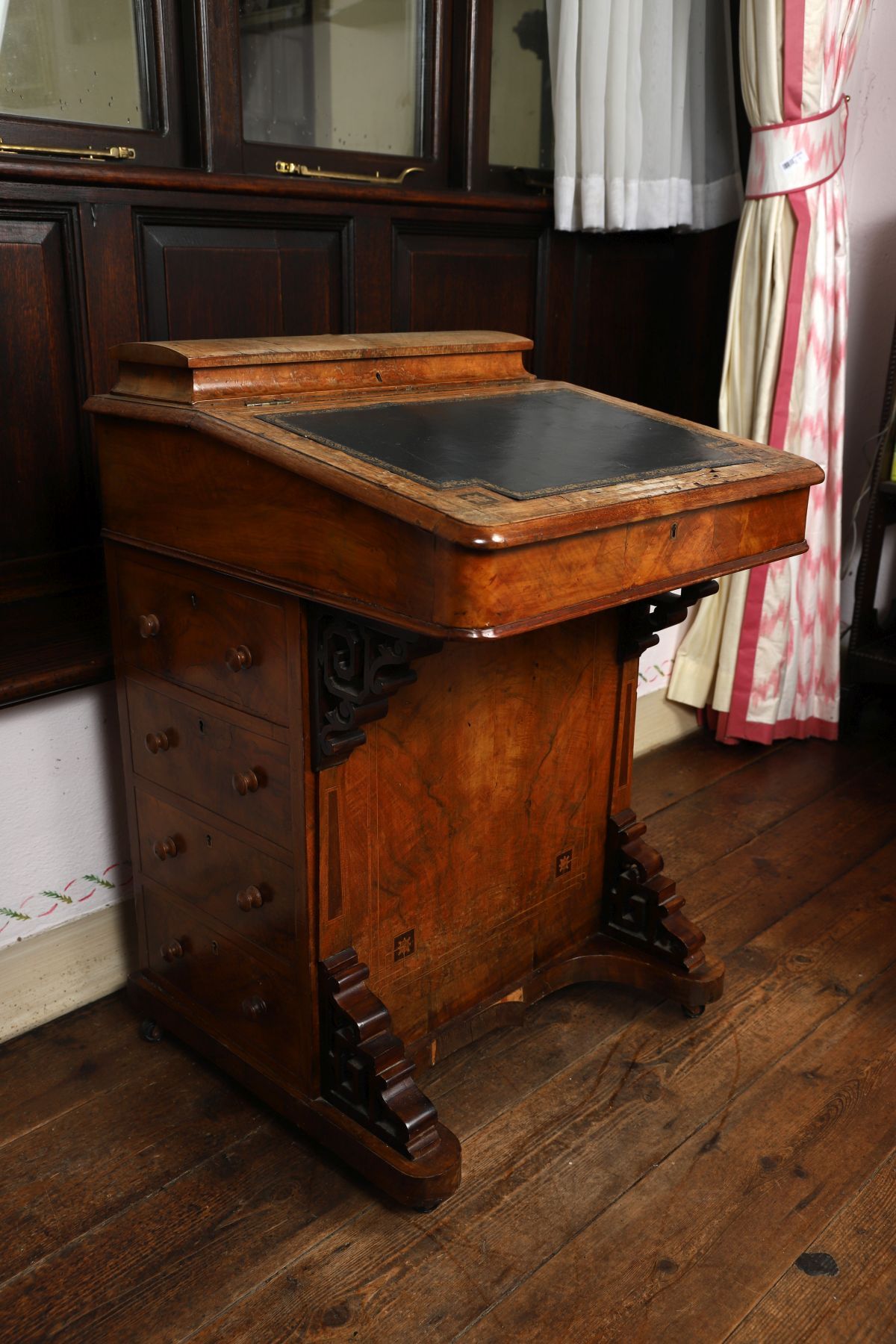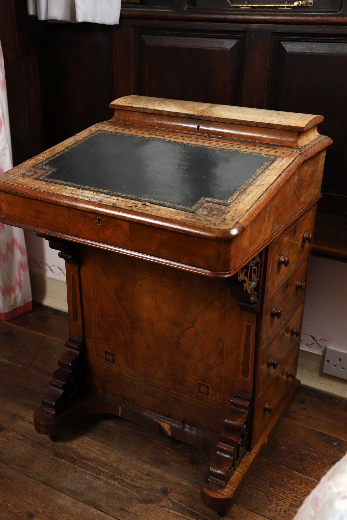 Lot 963 VICTORIAN WALNUT AND INLAID DAVENPORT