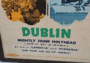 “Dublin Nightly from Holyhead†with vivid multicolour panels depicting Dublin landmarks and activities, framed and glazed.