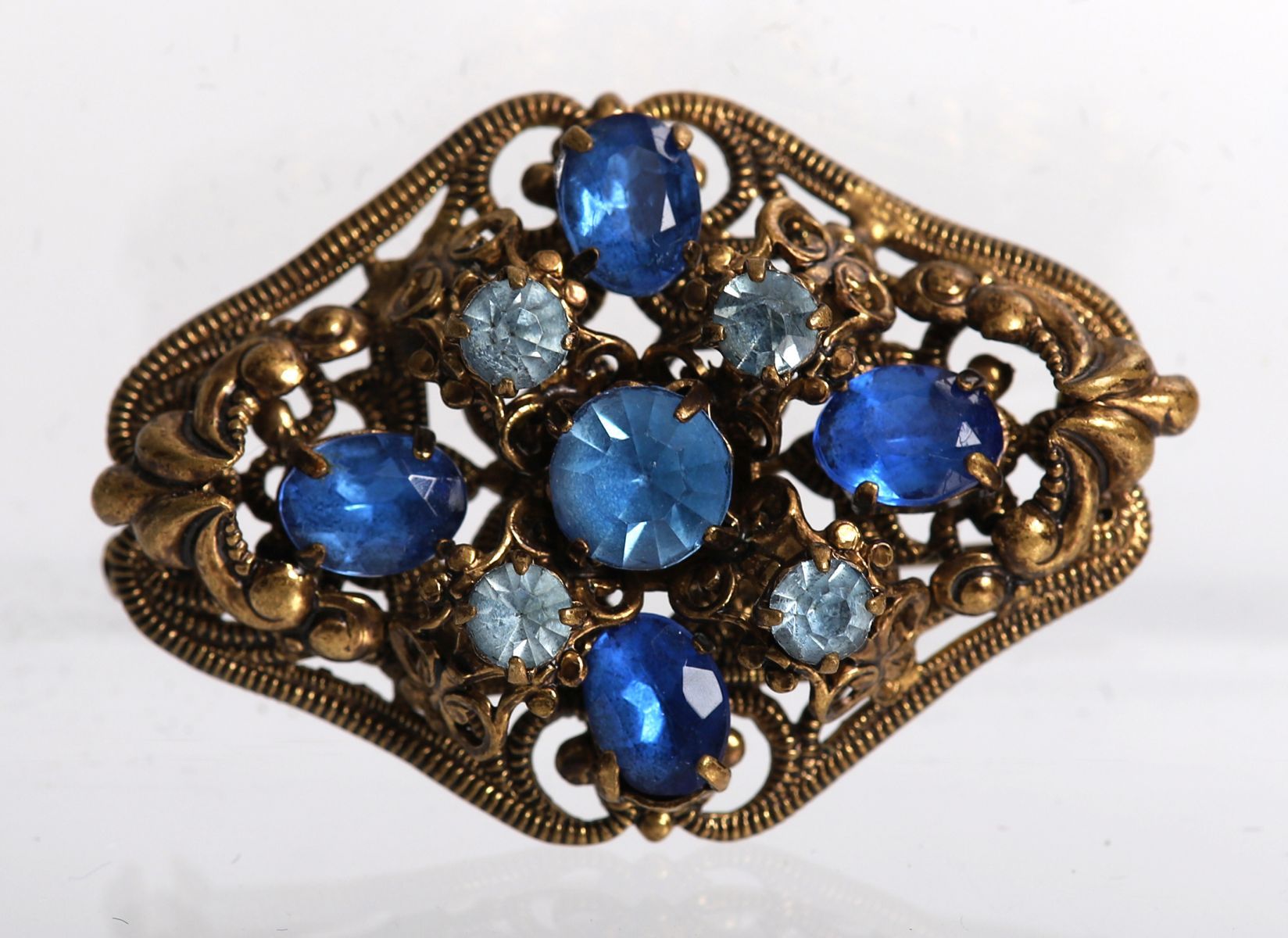 Lot 600 VINTAGE GILT METAL AND BLUE GLASS BROOCH