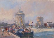 Oil on canvas, signed bottom left, in a linen mount and gilt frame.
