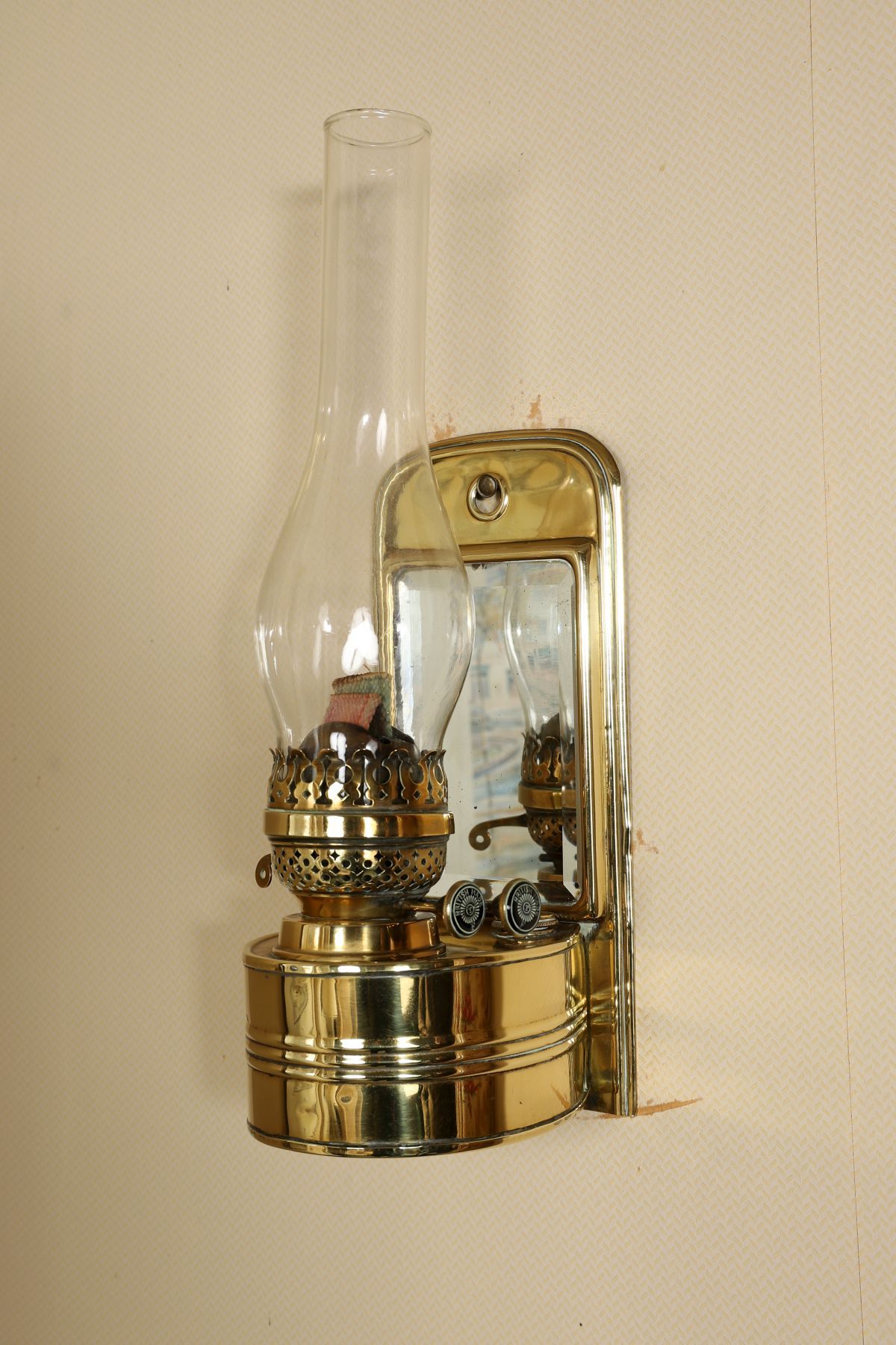 Lot 641 WALL-MOUNTED 19TH-CENTURY BRASS OIL LAMP
