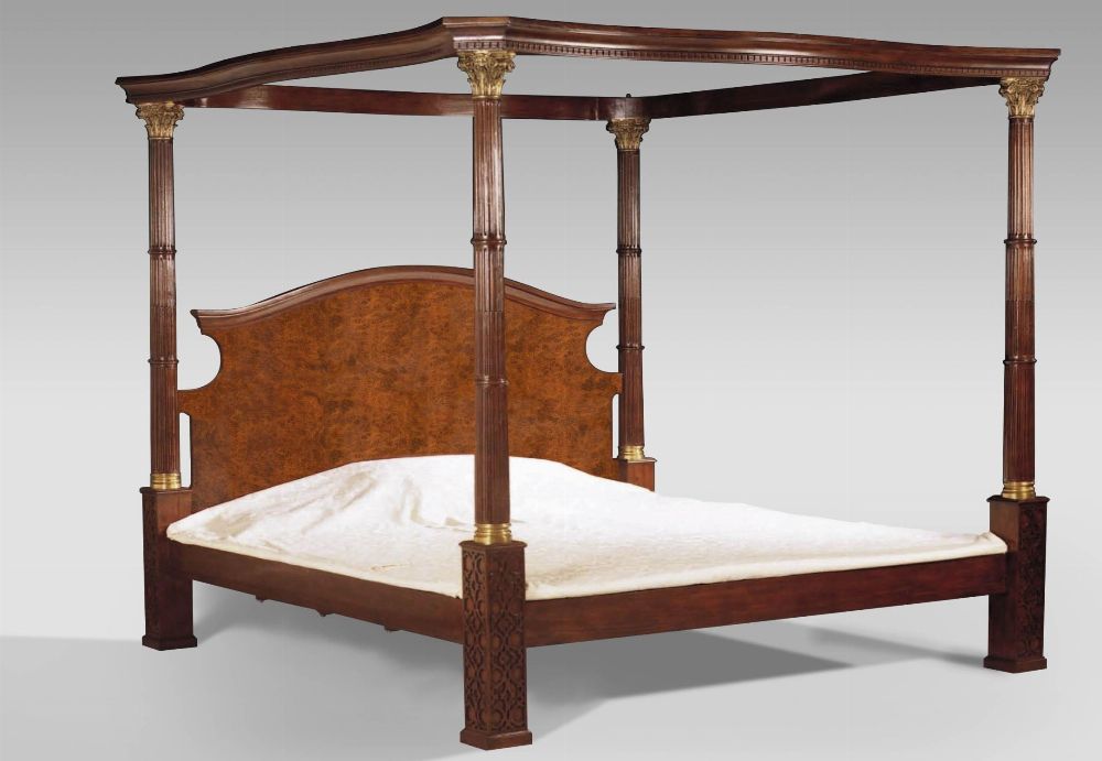 Lot 619 WALNUT FOUR-POSTER BED WITH ORMOLU CORINTHIAN CAPITALS