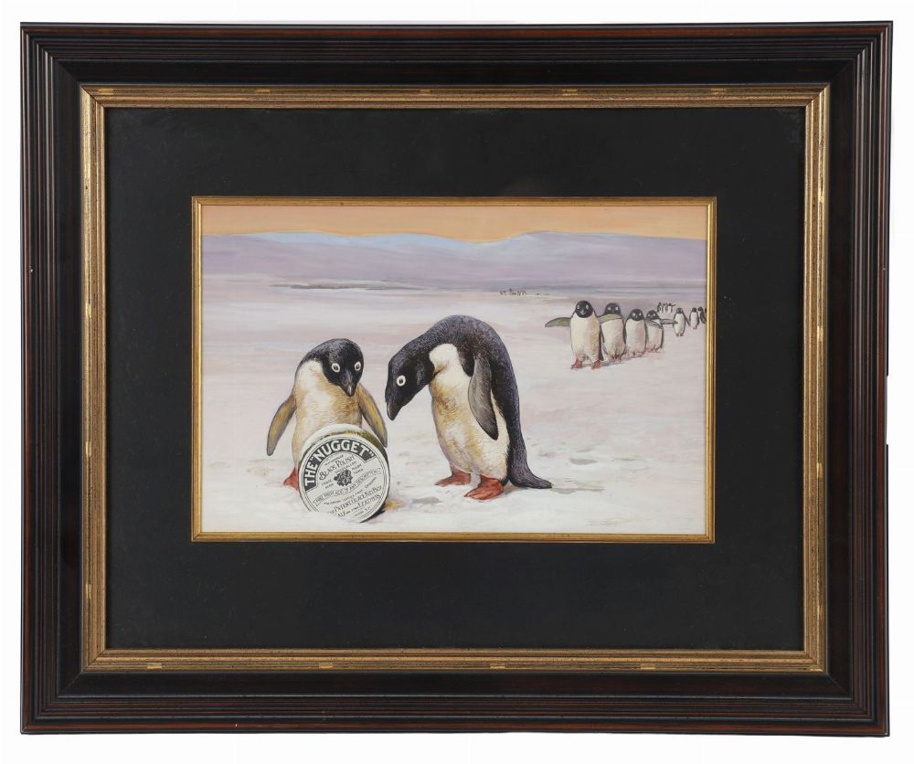 Lot 975 WATERCOLOUR STUDY OF PENGUINS, PREPARATORY DESIGN FOR ‘THE NUGGET’ SHOE POLISH ADVERTISING