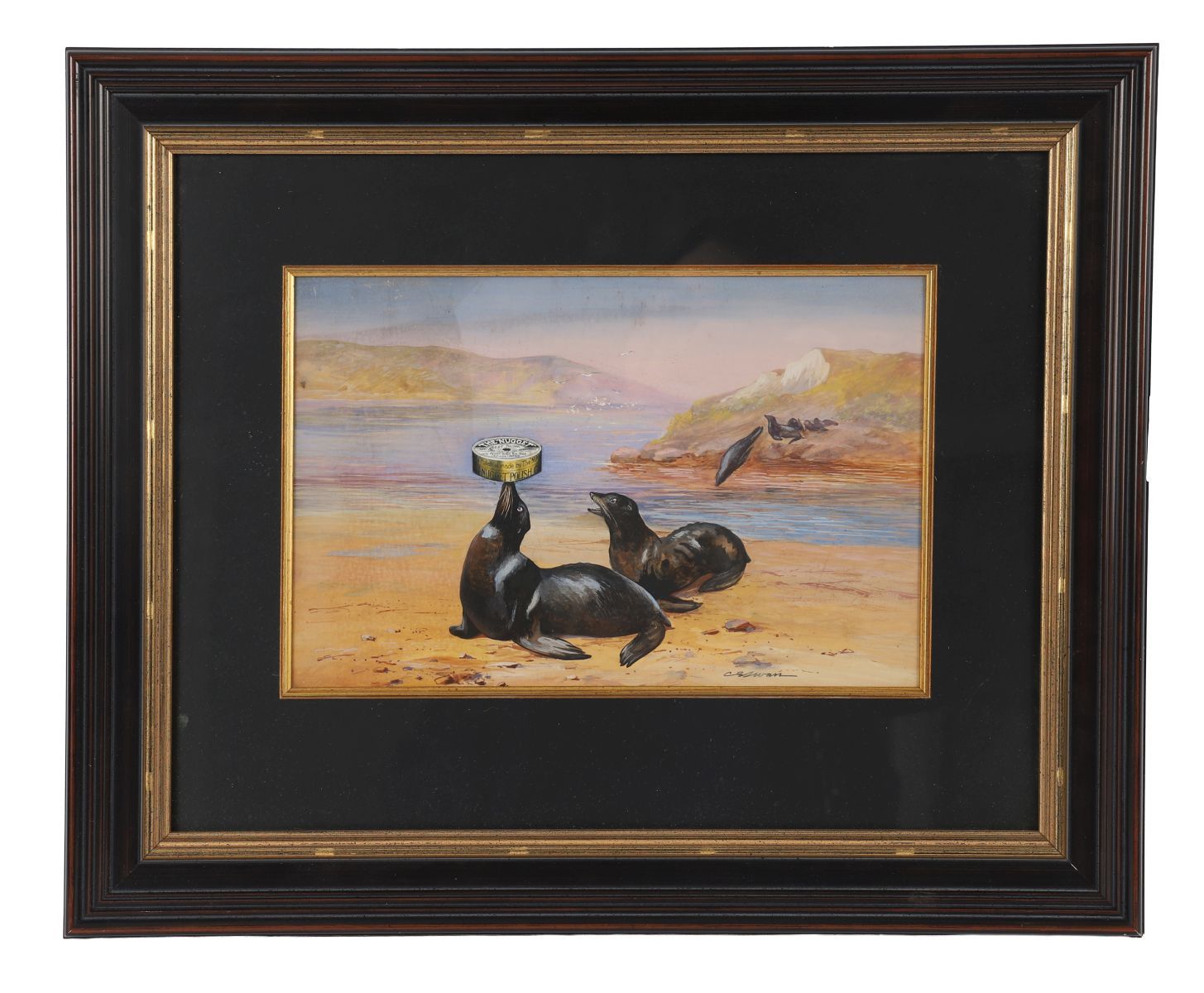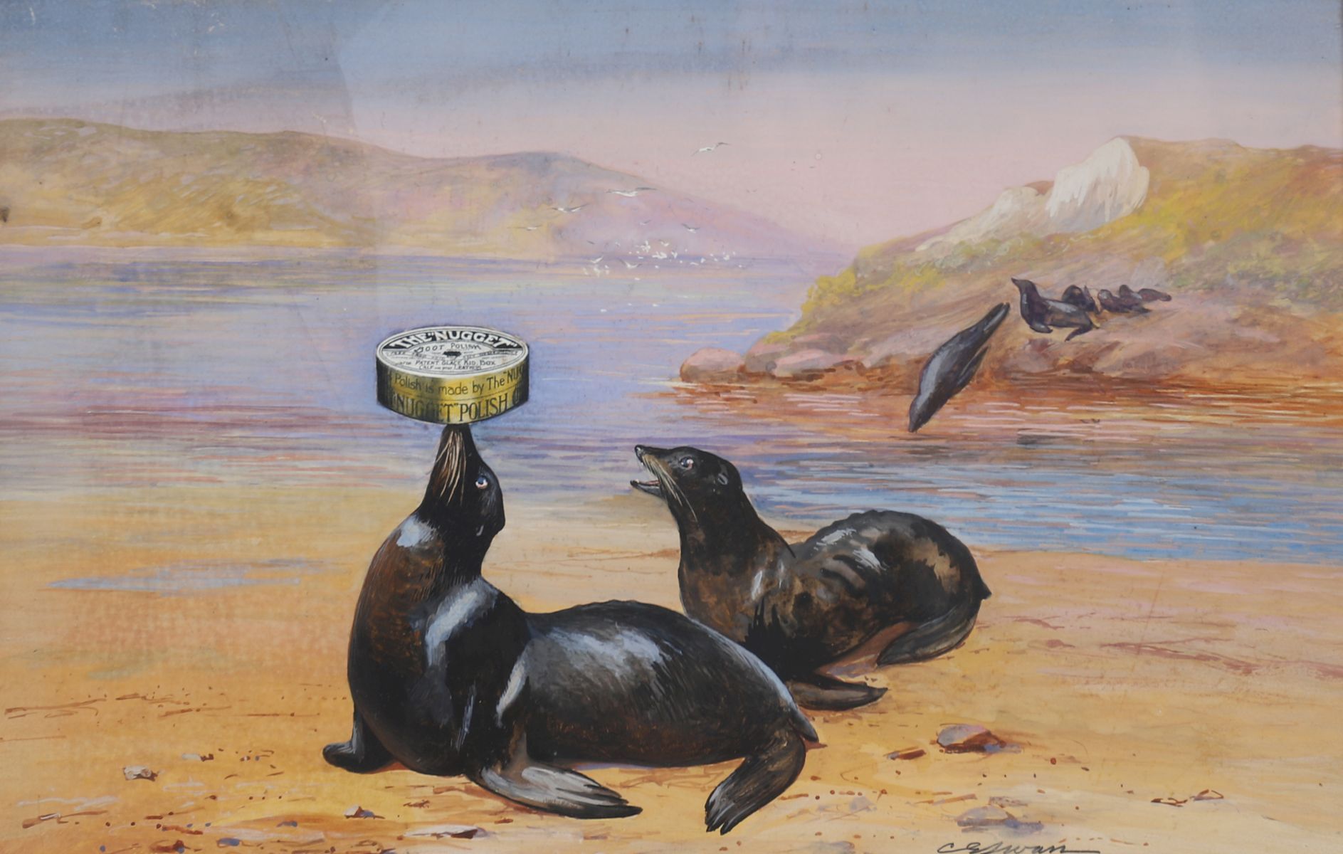 Lot 247 WATERCOLOUR STUDY OF SEALS, PREPARATORY DESIGN FOR ‘THE NUGGET’ SHOE POLISH ADVERTISING