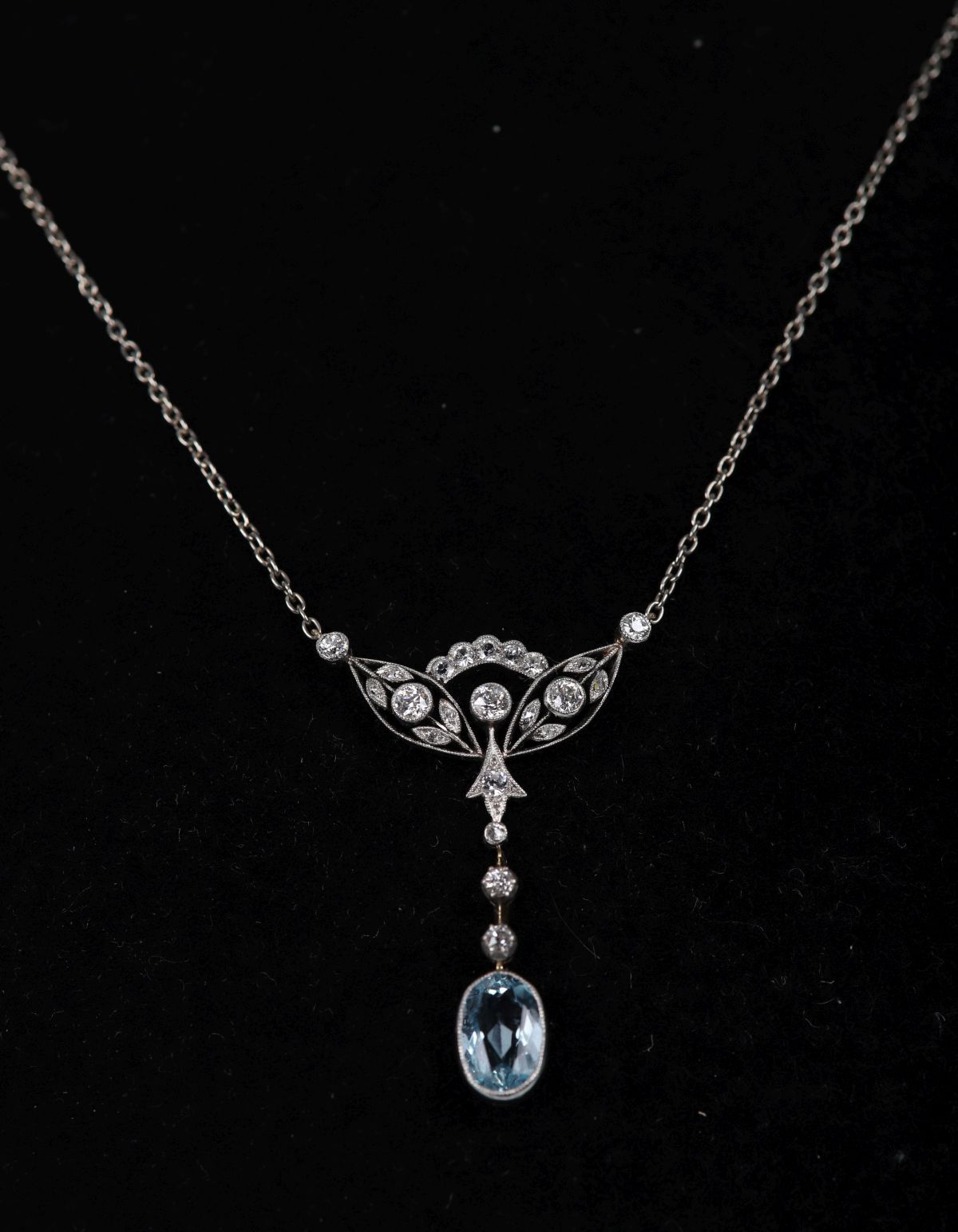 Lot 628 WHITE GOLD AQUAMARINE AND DIAMOND PENDANT