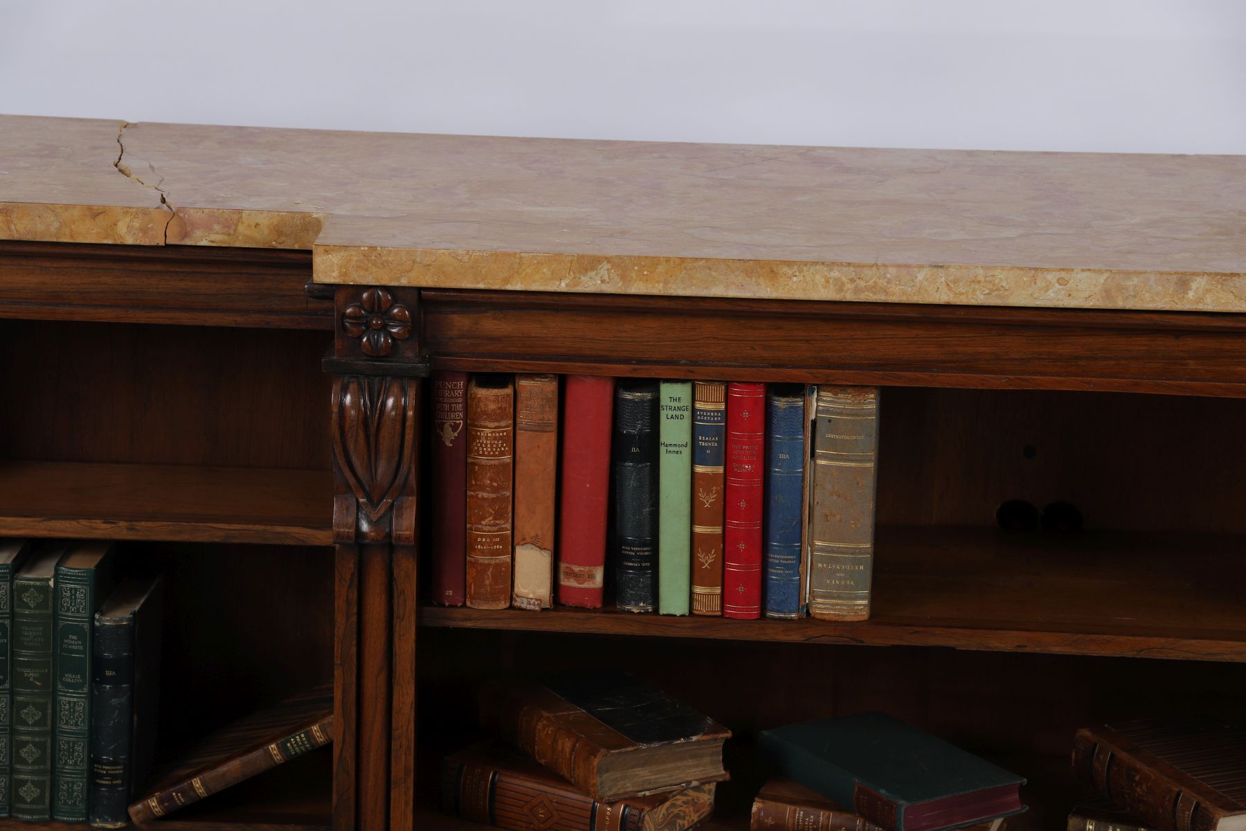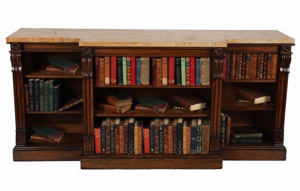 Lot 194 WILLIAM IV ROSEWOOD BREAKFRONT LIBRARY BOOKCASE WITH ANTHEMION-CARVED COLUMNS