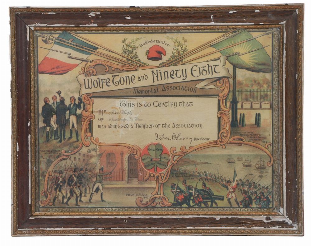 Lot 579 WOLFE TONE AND NINETY-EIGHT MEMORIAL ASSOCIATION CERTIFICATE