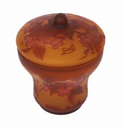 GALLE STYLE CAMEO GLASS LIDDED VASE