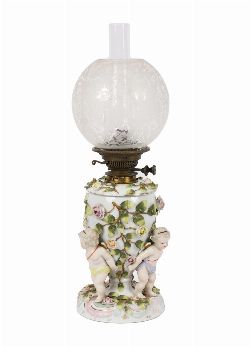 19TH CENTURY GILT BRONZED FIGURAL OIL LAMP