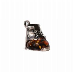 AMBER AND SILVER BOOT PENDANT, C. 1960S