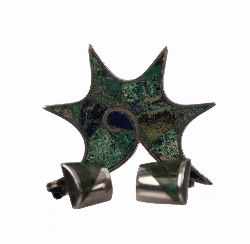 MEXICAN SILVER BROOCH AND EARRINGS SET WITH TURQUOISE AND LAPIS