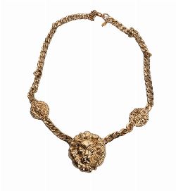 GILT METAL NECKLACE WITH LION HEAD MEDALLIONS