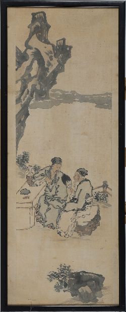 CHINESE WATERCOLOUR SCROLL PAINTING, SCHOLARS CONVERSING