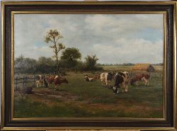 LEOPOLD WENZEL (1885 - 1972) 20TH-CENTURY OIL ON CANVAS, CATTLE IN A FIELD