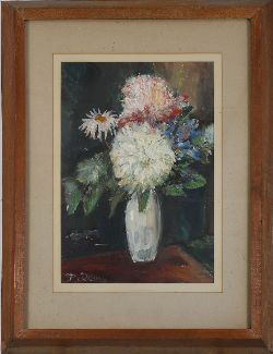 T. DAVIS, STILL LIFE OF FLOWERS IN A VASE